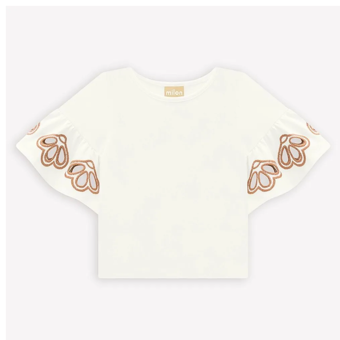 Confeccionada en un tejido suave y ligero, es perfecta para el uso diario y ocasiones especiales. Las mangas son el punto destacado, adornadas con detalles que añaden un toque divertido.