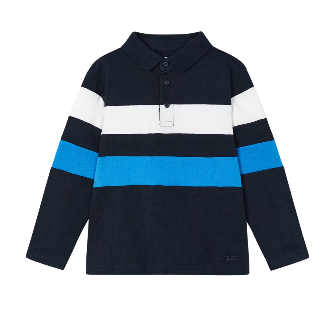 Buzo blanco de niño con diseño de rayas y con fit generalmente relajado, permitiendo libertad de movimiento para jugar y explorar. Además, Mayoral se destaca por su calidad, asegurando que el buzo sea duradero y fácil de cuidar, lo que lo convierte en una excelente opción para cualquier guardarropa infantil.