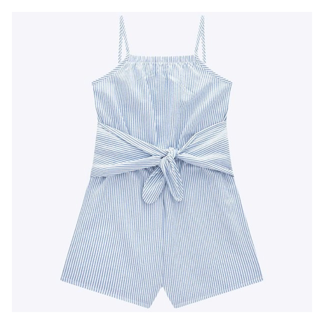 El enterizo azul de niña es una prenda práctica y chic, perfecta para los días y para ocasiones especiales. Confeccionado en un tejido ligero y cómodo, este enterizo cuenta con un color azul vibrante que destaca y aporta frescura al atuendo.