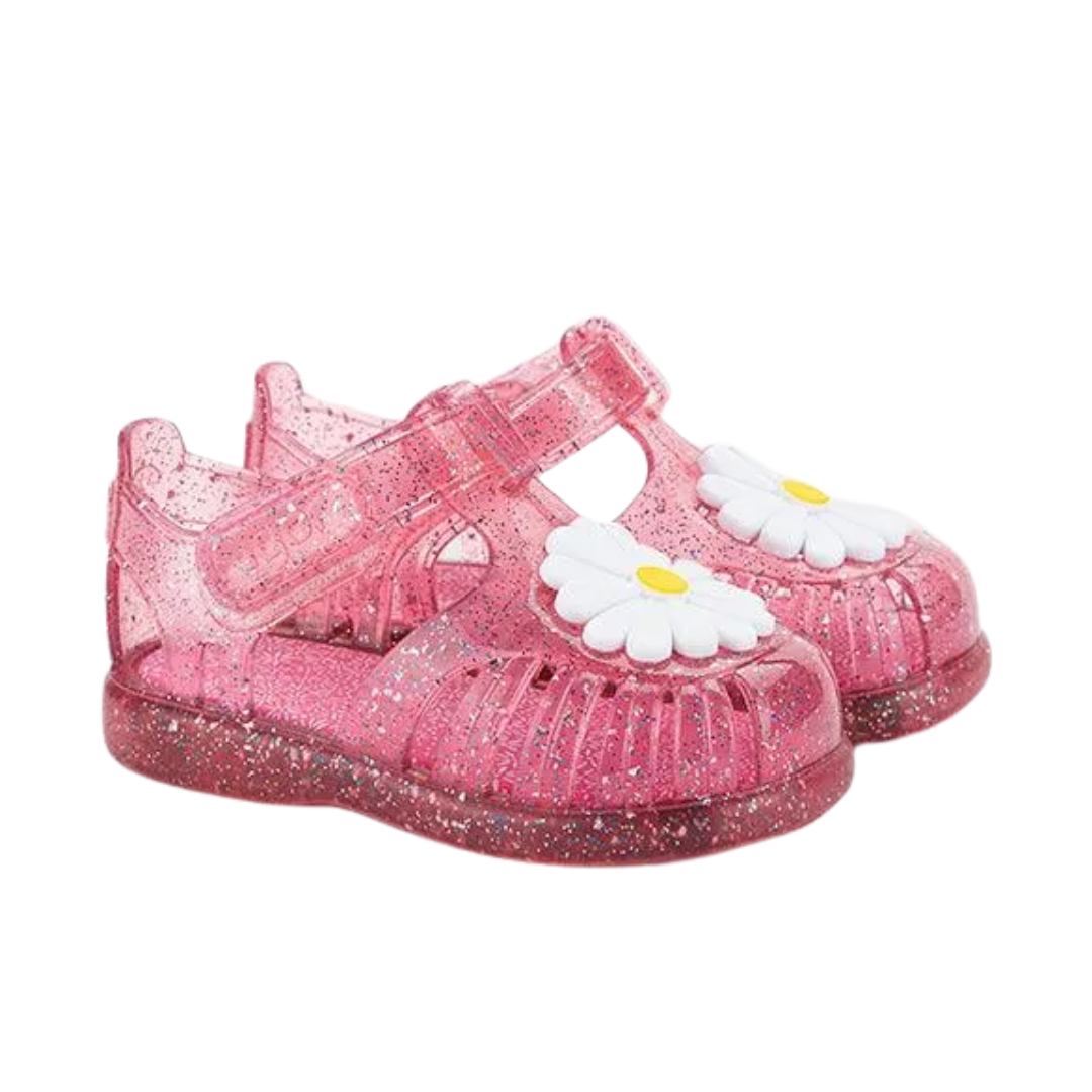 Sandalias GLITTER FUCSIA de estilo sport Marca Igor 100% Hecho en España, Cierre de velcro al tobillo para mayor comodidad, con plantilla extra-confort y extraíble para facilitar su limpieza