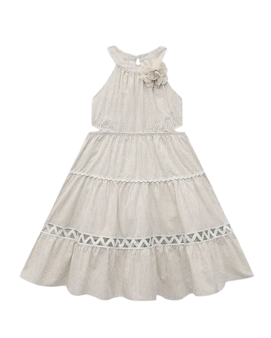 Nuestro hermoso vestido largo beige de niña es una prenda elegante y encantadora, perfecta para ocasiones especiales o para el uso diario en los días de verano. Confeccionado en un tejido ligero y fluido, el vestido se desliza suavemente, proporcionando comodidad y estilo.