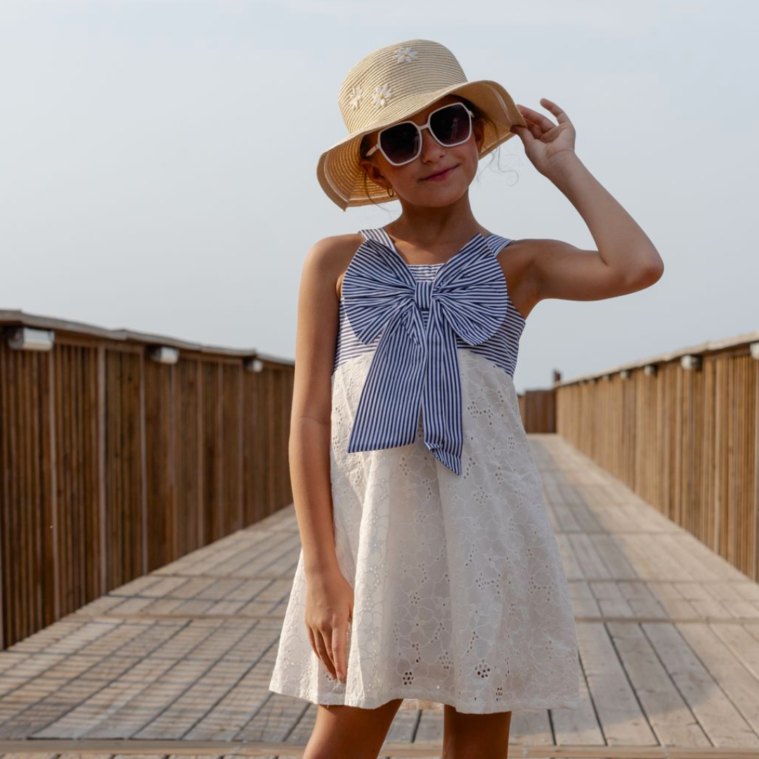 Encantador vestido de rayas para niña es la combinación perfecta de comodidad y estilo. Confeccionado en una tela suave y fresca, es ideal para cualquier ocasión, desde un paseo casual hasta una reunión especial.