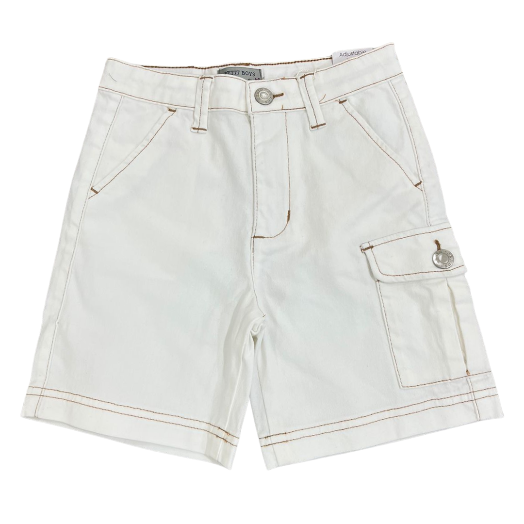 Bermuda de niño blanca es una prenda de verano cómoda y versátil, ideal para actividades al aire libre o para ir a la playa, su diseño incluye bolsillos laterales, perfectos para guardar pequeños objetos o para mayor funcionalidad mientras el niño juega o explora.