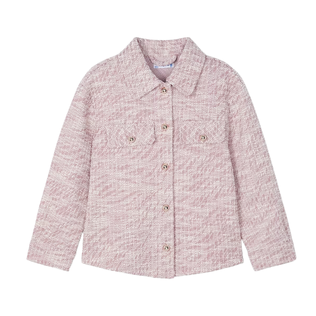 Sobre camisa de manga larga para niña con puños abotonados. Cuello camisero.