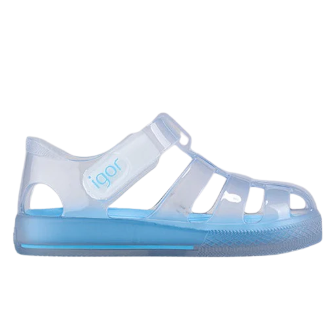 Sandalias igor en material translucido brillante, con estilo sport perfectas para la playa, la piscina o su día a día. Muy cómodas, flexibles y blanditas.