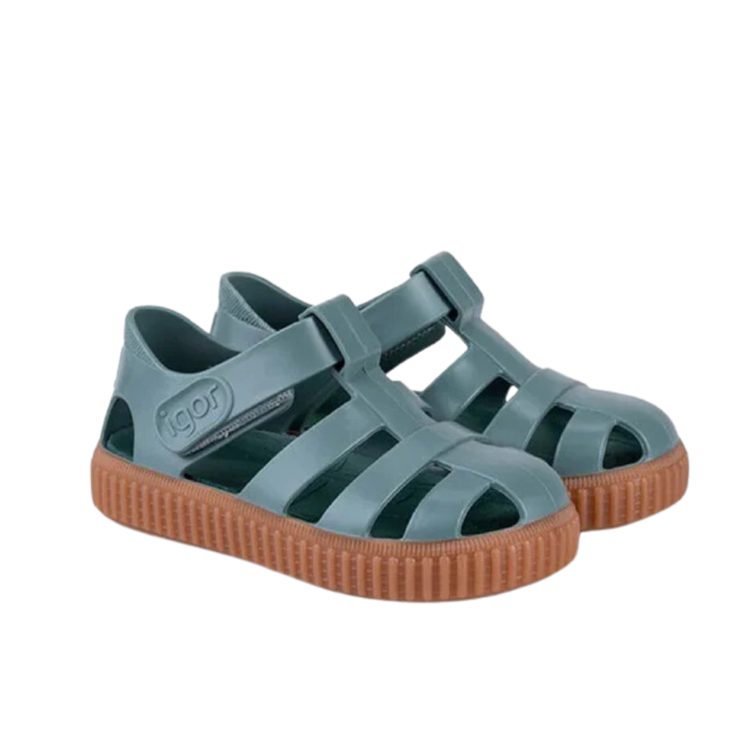 Sandalias en acabado mate con suela de color caramelo de estilo sport perfectas para la playa, la piscina o su día a día. Muy cómodas, flexibles y blanditas.
