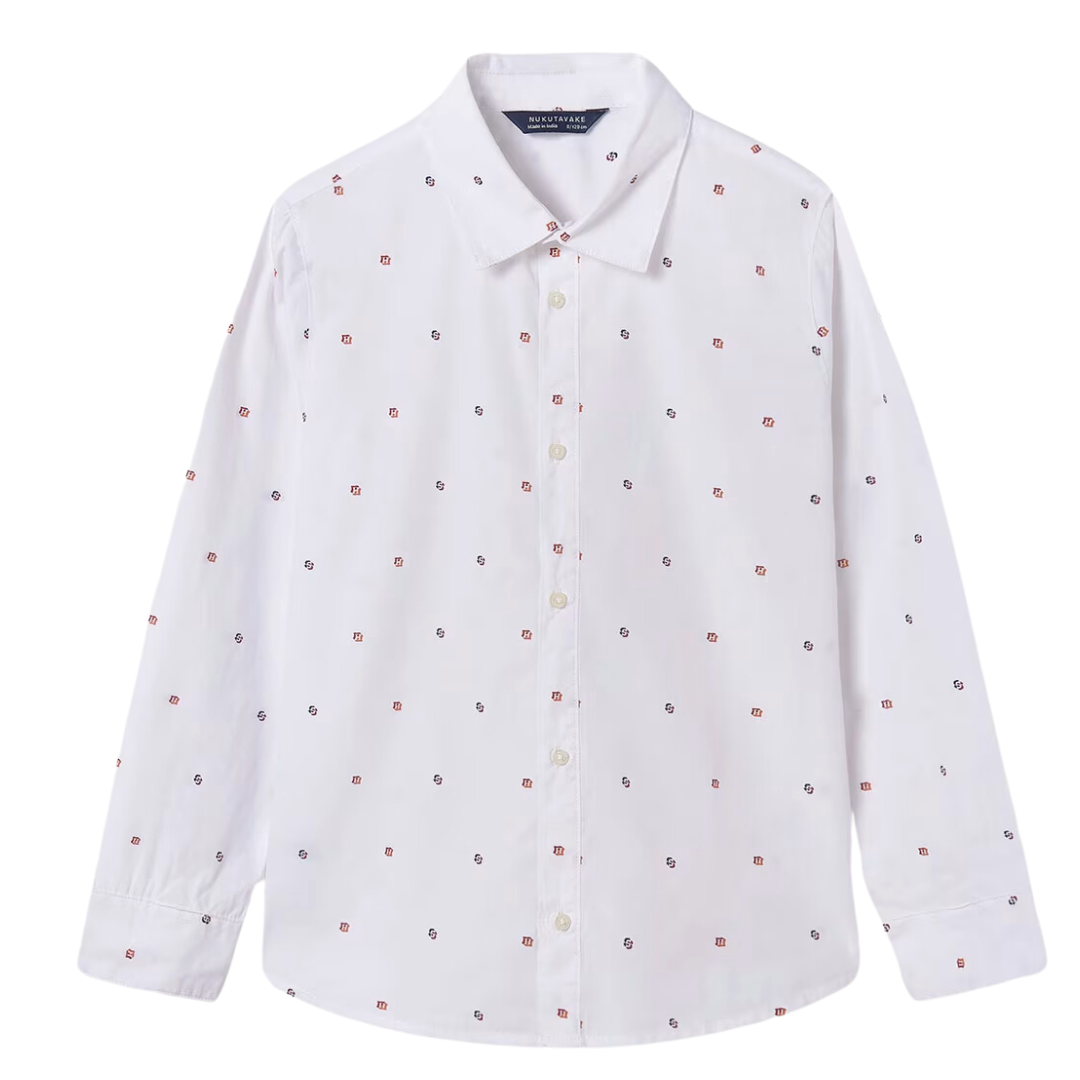 Camisa blanca manga larga de niño en su diseño puede incluir detalles como un cuello clásico, botones en la parte delantera y puños con botón.