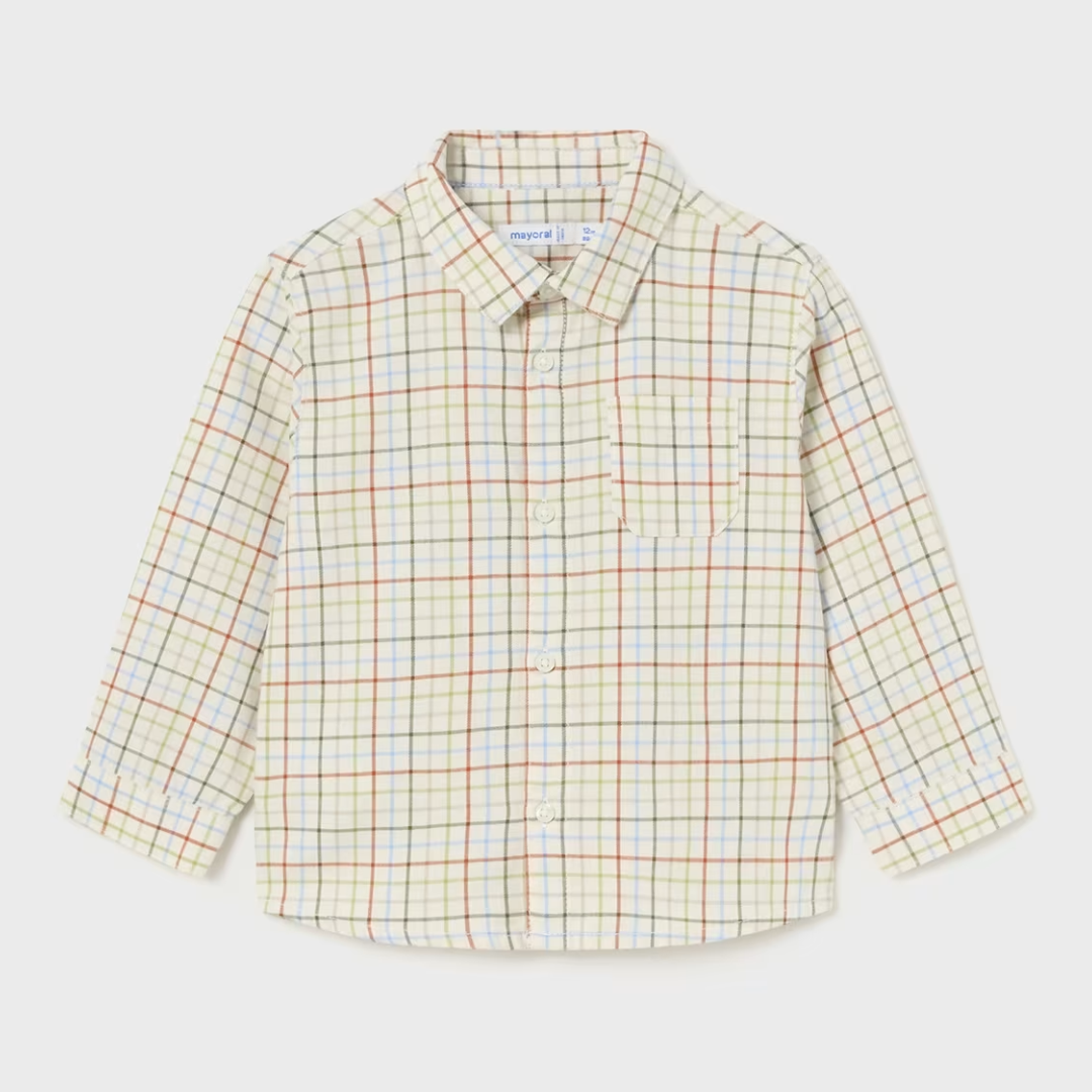 camisa manga larga multi de botones para bebé con diseños de cuadros.