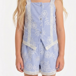 Conjunto de niña color blue, cómodo y delicado, compuesto por blusa y falda o short a juego. Tiene un estilo dulce y fresco, ideal para uso diario o salidas casuales.
