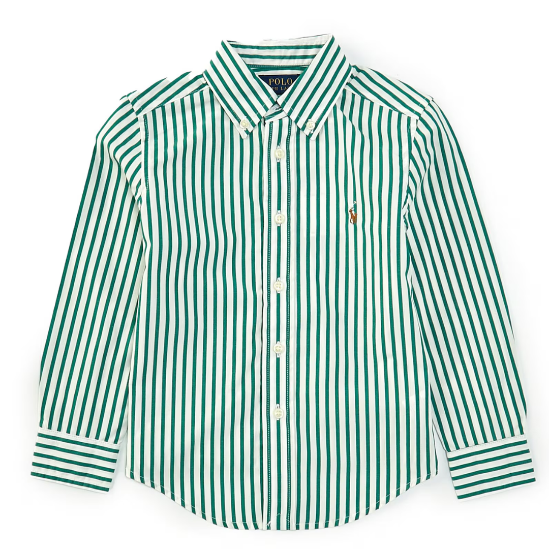 Camisa green para niños marca polo Ralph Lauren es una prenda suave, cómoda y de estilo clásico, perfecta para el uso diario de los más pequeños. Generalmente está confeccionada en algodón de alta calidad, lo que garantiza suavidad, transpirabilidad y confort durante todo el día.
