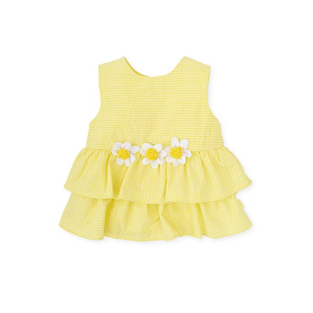Esta blusa es una opción perfecta para quienes buscan añadir un poco de color y encanto a su atuendo tiene destalle floral en tono blanco y cierre de botones en la parte trasera.