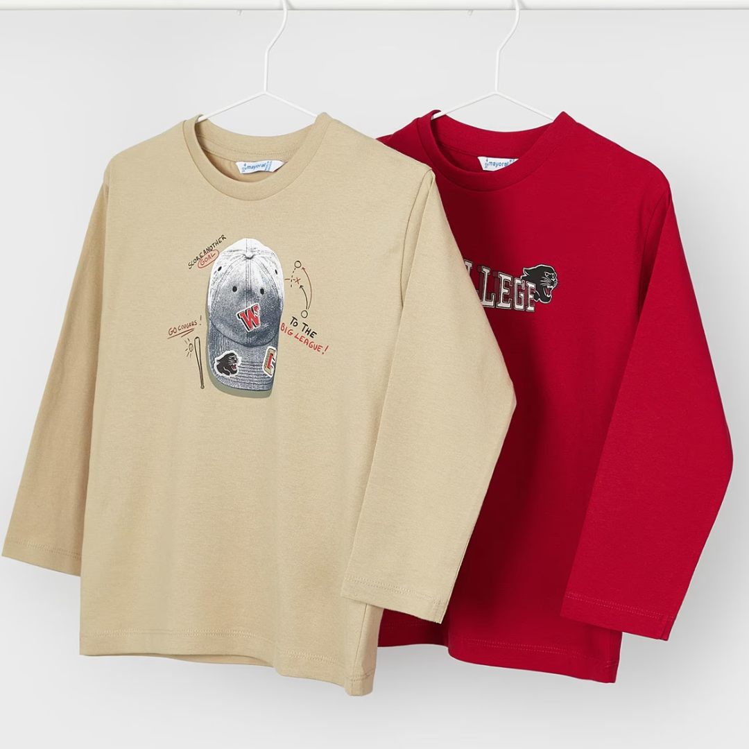 Set de 2 buzos en tonos rojo y khaki, elaborado en 100% algodón.
