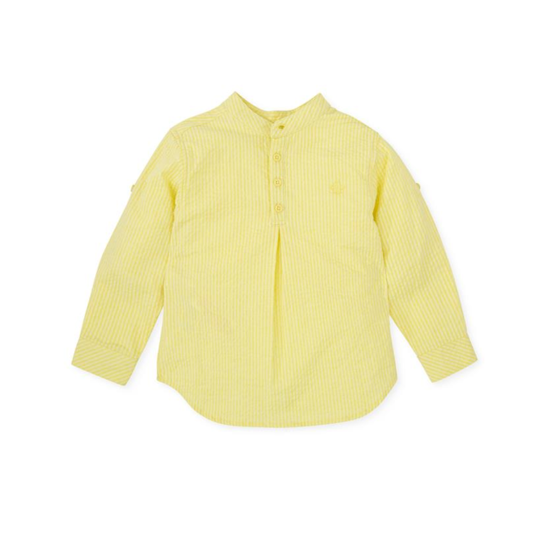 Camisa de manga larga con cuello Nehru hecha de tela Seersucker.