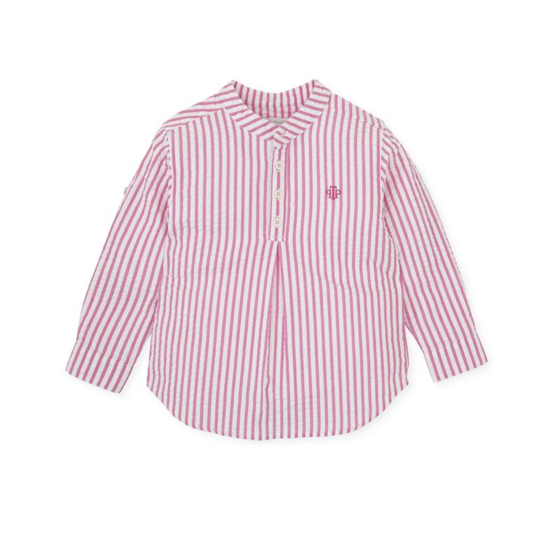 Camisa de manga larga con cuello Nehru hecha de tela Seersucker.