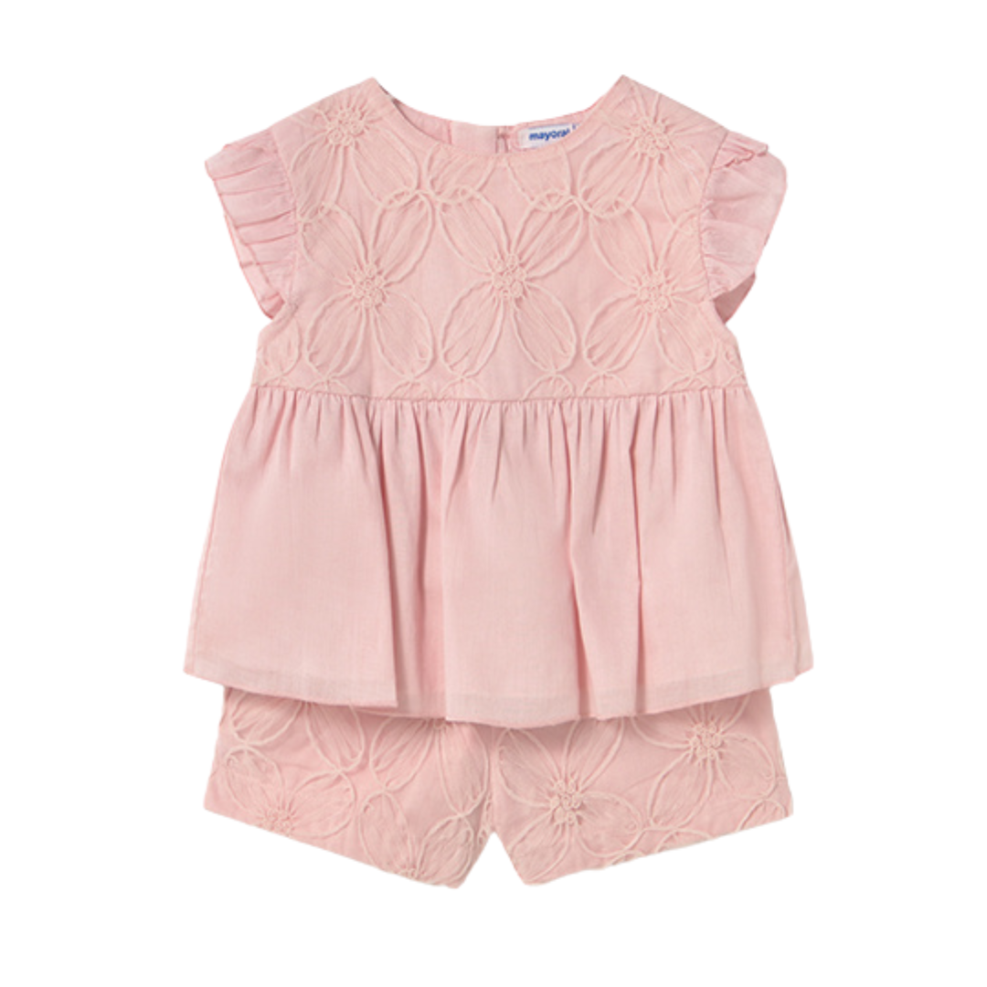 Conjunto de niña compuesto por short y blusa es una opción encantadora y fresca para cualquier ocasión.