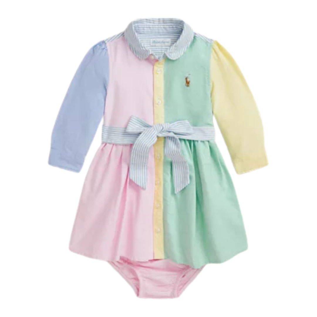 Vestido de rayas de bebé de Polo Ralph Lauren es una prenda elegante y cómoda, ideal para ocasiones especiales o para el uso diario. Este vestido presenta un diseño de rayas horizontales en colores suaves y pasteles, lo que le da un toque clásico y fresco. El material suele ser suave al tacto, generalmente de algodón, para garantizar la comodidad del bebé.