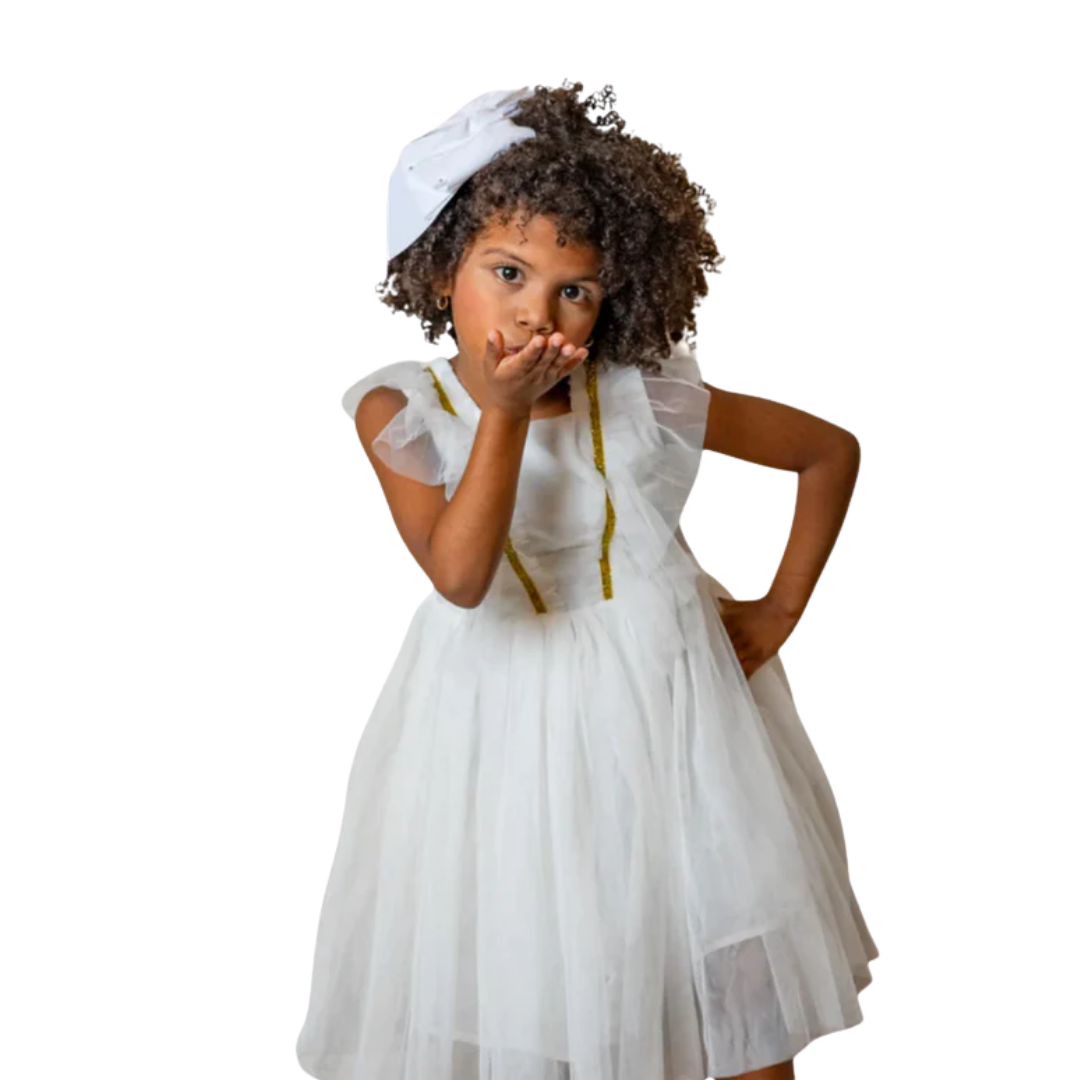 Vestido blanco de tul para niña es una prenda encantadora, ideal para ocasiones especiales como fiestas, bodas o celebraciones. Este tipo de vestido se caracteriza por su elegancia y ligereza, ya que el tul, un material fino y transparente, le otorga un volumen delicado y una textura suave, creando un efecto etéreo y encantador.
