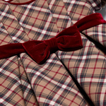 Vestido para bebé niña con estampado de cuadros, confeccionado en tela suave y cómoda. Lleva un encantador lazo rojo en la cintura que aporta un toque dulce y elegante. Ideal para ocasiones especiales o para el día a día.